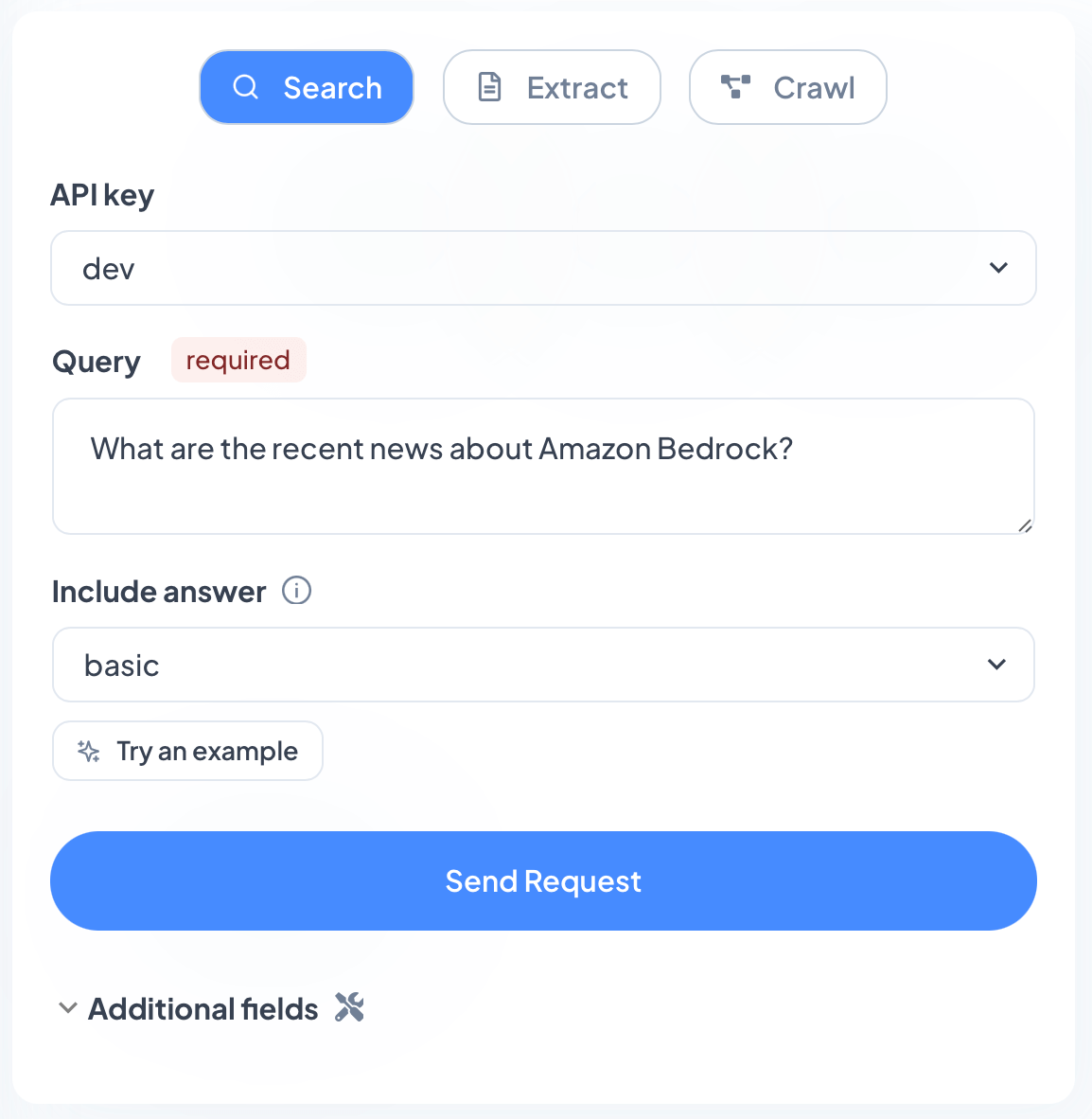 Under Additional fields, Tavily offers several powerful parameters to fine-tune your searches: