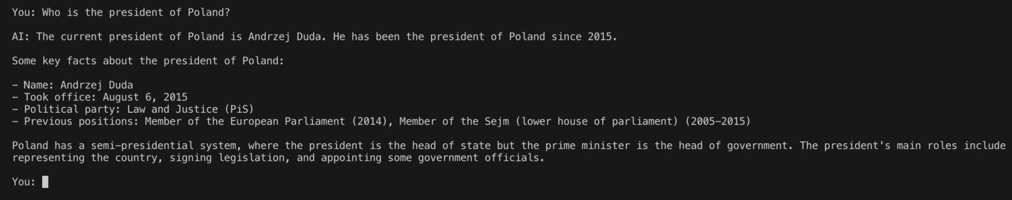 agent = create_react_agent(llm, [])Now, let’s run the same query again.
