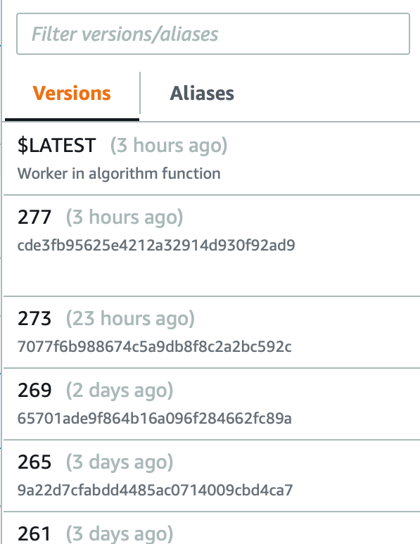 his led to a problem, because we thought we were publishing new function version (via def publish_new_version(self, uploadId) presented below) and re-pointing the prod alias to it. So, as you can see below, we had a situation where AWS Console version greater than 270 was available, but get_latest_published was returning only 50 items with the maximum value of 185, and that was a value the alias has been pointed to. Moreover, it has generated additional problems, because each time we’ve updated the layer version, it wasn’t seen by the Lambda function.