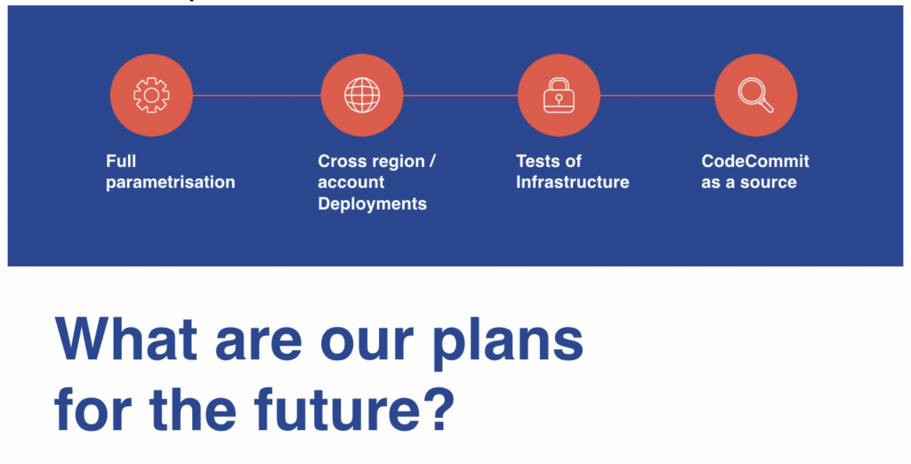 In the future, we plan at least the full parameterization of our pipeline and cross-region / cross-account deployment to reduce the number of pipelines. Moreover, we want to test infrastructure to increase reliability but also for security reasons, for we would like to use a private control version system, like AWS CodeCommit, as a source. It allows greater granulation of access rights to specific repositories, branches, and Pull Requests, whereas, at the same time, GitHub grants permissions to all repositories within organisation. These are not all the changes, of course. Our demand will alter and grow over time. The main thing is to achieve all goals as effectively as possible, and that is what we have done.