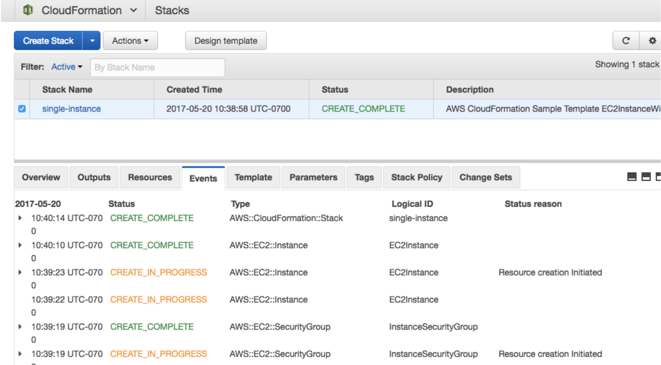 AWS CloudFormation stack dashboard