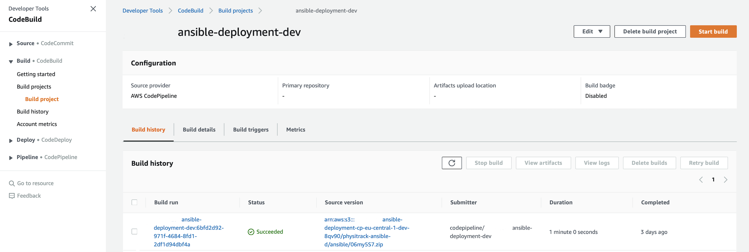 AWS CodeBuild dashboard