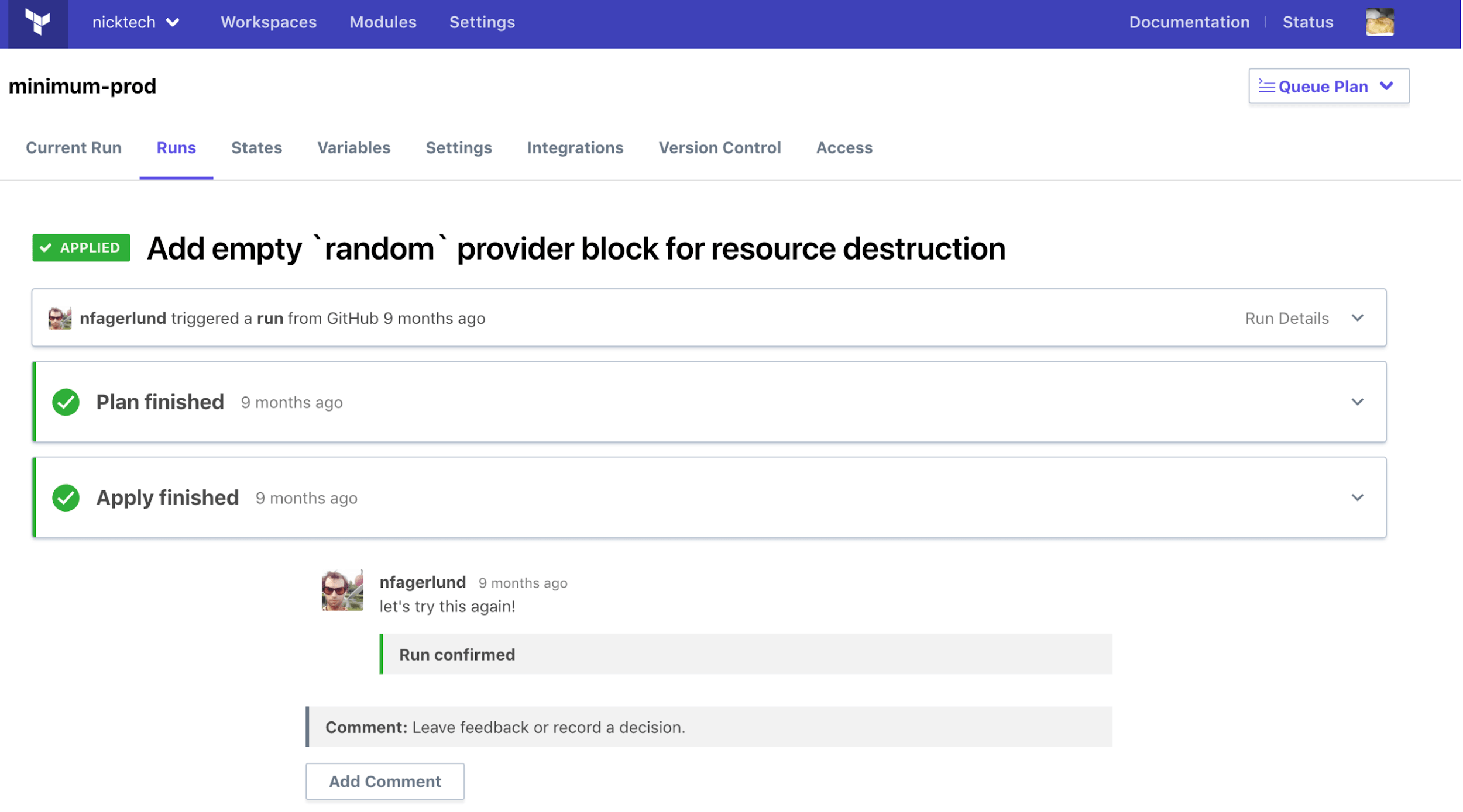 Hashicorp Terraform Cloud dashboard