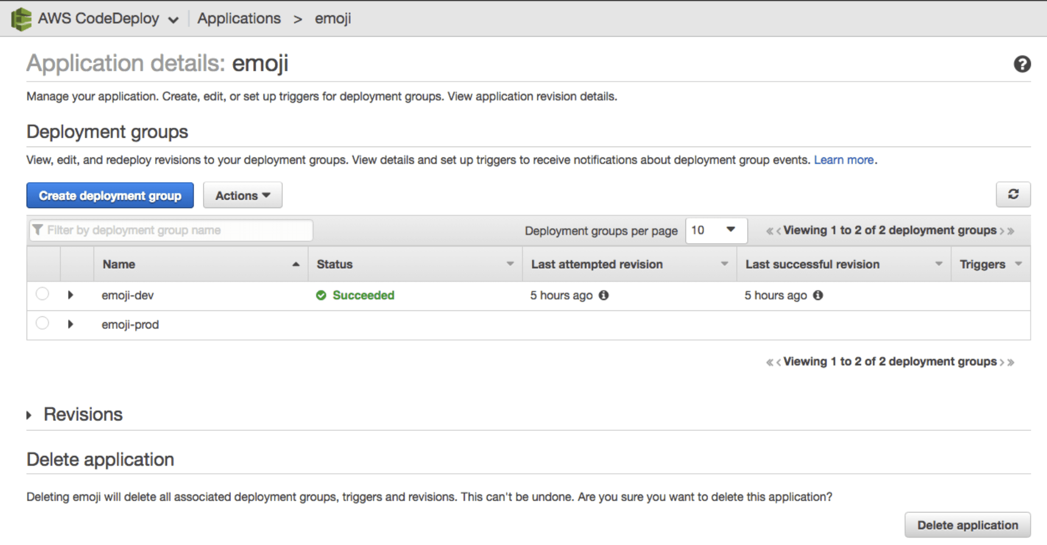 AWS CodeDeploy dashboard