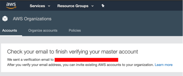 $ aws-organizations-example terraform applyAn execution plan has been generated and is shown below.Resource actions are indicated with the following symbols:+ createTerraform will perform the following actions:# module.root.aws_organizations_organization.org will be created+ resource "aws_organizations_organization" "org" {+ accounts = (known after apply)+ arn = (known after apply)+ feature_set = "ALL"+ enabled_policy_types = [+ "SERVICE_CONTROL_POLICY",]+ id = (known after apply)+ master_account_arn = (known after apply)+ master_account_email = (known after apply)+ master_account_id = (known after apply)+ non_master_accounts = (known after apply)+ roots = (known after apply)}Plan: 1 to add, 0 to change, 0 to destroy.Do you want to perform these actions?Terraform will perform the actions described above.Only 'yes' will be accepted to approve.Enter a value: yesmodule.root.aws_organizations_organization.org: Creating...module.root.aws_organizations_organization.org: Creation complete after 5s [id=o-eipgmnk07c]Apply complete! Resources: 1 added, 0 changed, 0 destroyed.
