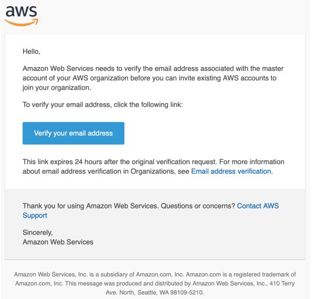 Now, log in to your mailbox, check for a message from AWS and confirm the ownership of the email account: