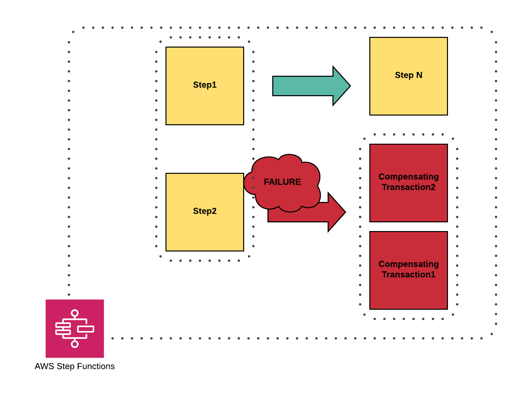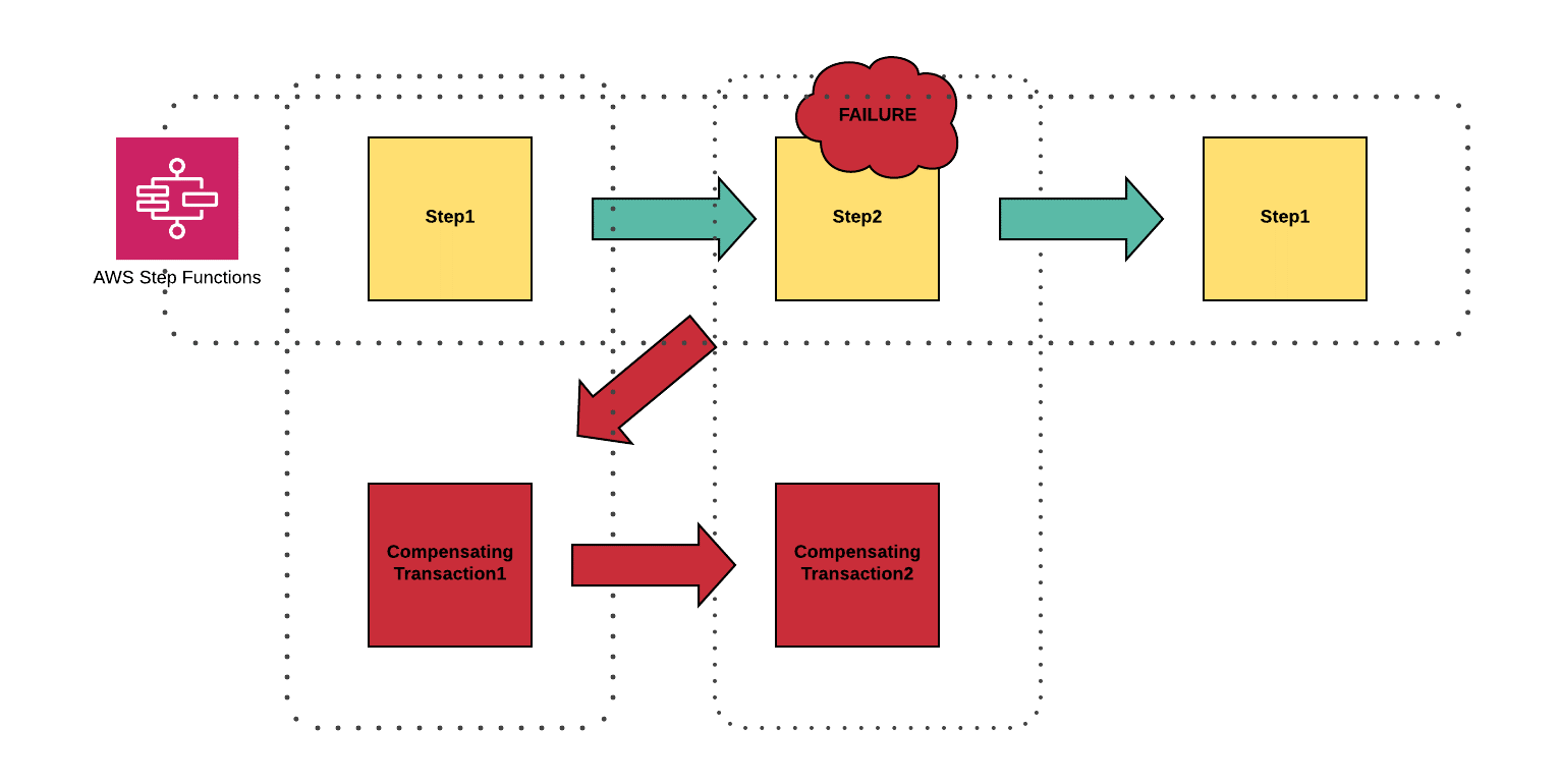 AWS Step Functions give us the ability to build activity flows (not to be mistaken with state machines) that are really helpful when we have to deal with transaction-like requests. What I have in mind can be explained by Wikipedia’s definition of an “atomic transaction”: